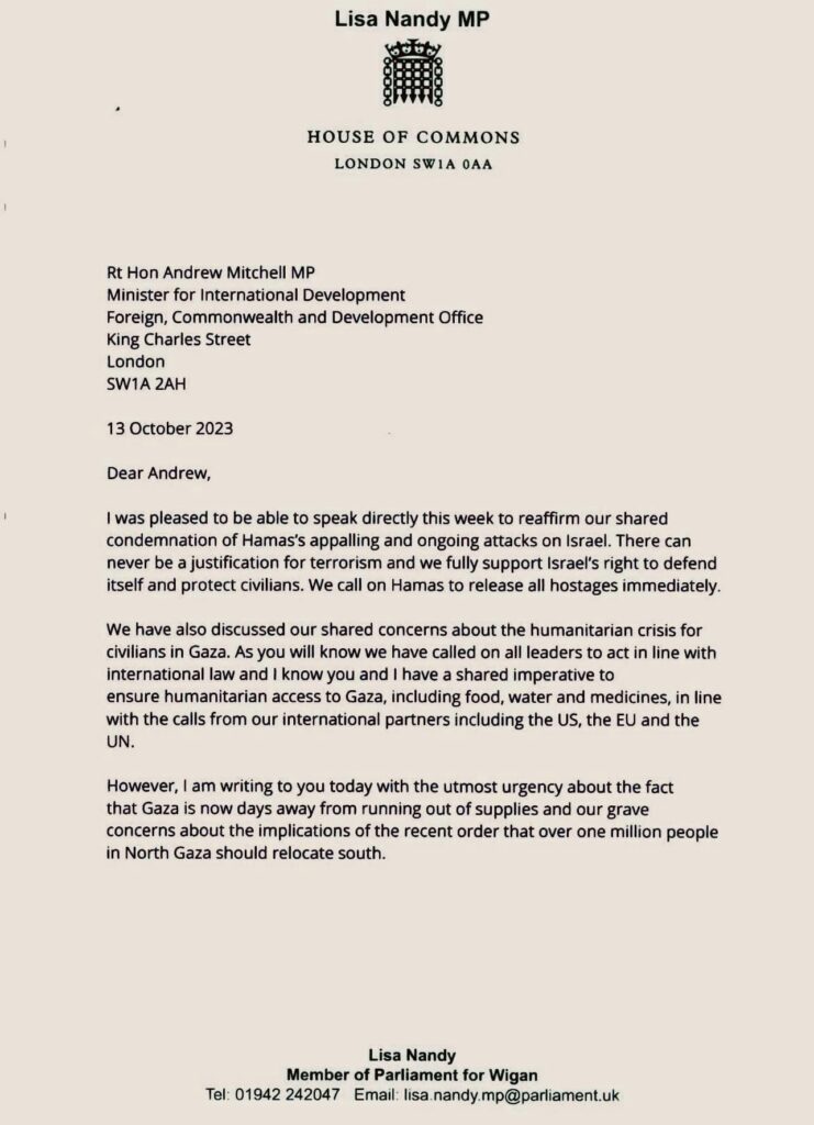 Israel has the right to defend itself, to rescue hostages and to protect its civilians. It is however imperative that international law is observed. We need to ensure humanitarian access to Gaza, and the supply of food, water, electricity and medicines. Labour have urged the British Government to apply pressure to ensure stronger action to ensure this.